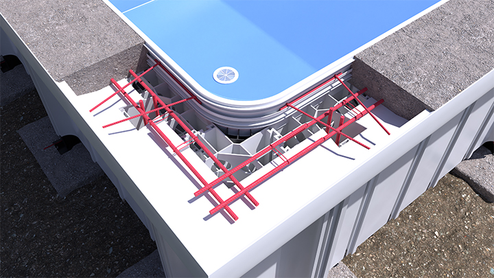 Animée par une exigence technique rigoureuse, PISCINES DUGAIN propose une solution inédite sur le marché : une banche à bétonner intégrée de façon permanente à l’ouvrage. Cette innovation garantit la solidité de la structure, soutenue par une garantie de 20 ans sur le coffrage perdu.